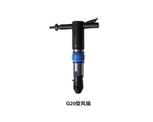 風鎬由配氣機構、衝擊機構(gòu)和鎬(gǎo)釺等(děng)組成。衝擊機構是一個厚壁氣缸,內有一衝擊錘(chuí)可沿氣缸內壁作往複運動。鎬釺的尾部插入氣(qì)缸的前端,氣缸後端裝有配氣閥箱。